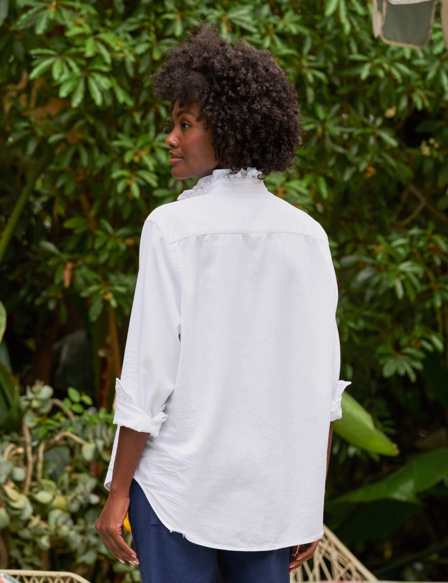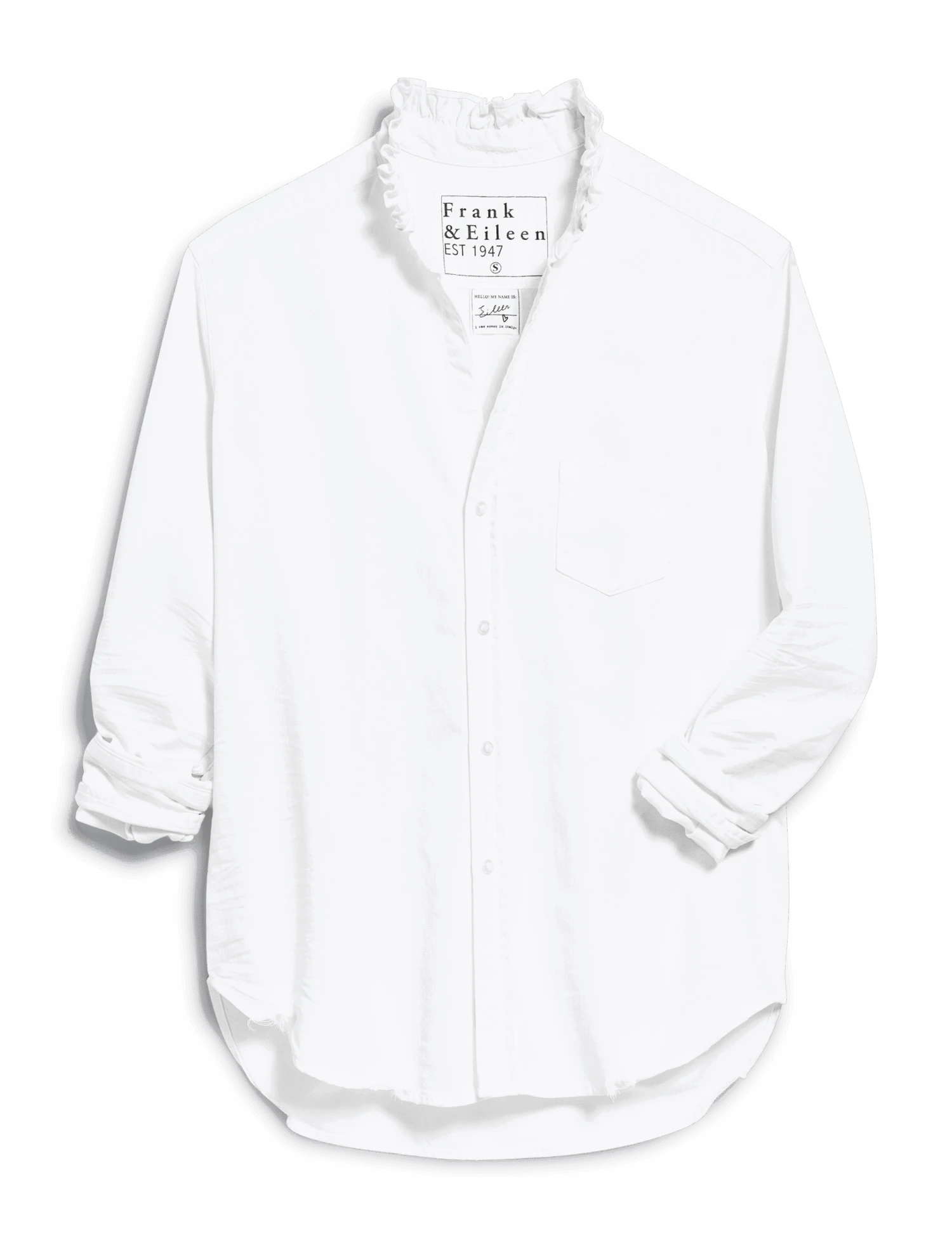 Eileen is our best-selling button-up for a reason. Easy to wear, airy on the body, and ridiculously flattering with our signature button placement, we’ve added a gorgeously feminine ruffled collar to dress up an already iconic piece.