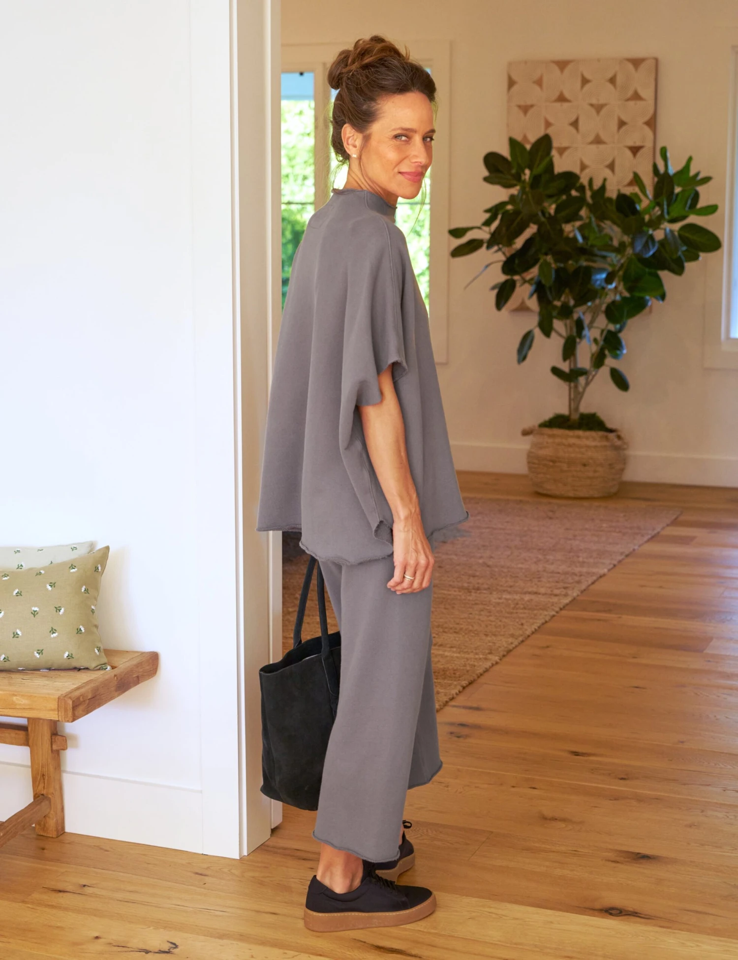 Travel through a Malibu day in our one-size-fits-all Audrey Capelet paired with the Catherine Sweatpant. Our dream itinerary: An early beach walk, casual lobster rolls on the boardwalk for lunch, and a sunset hike before strolling to dinner.